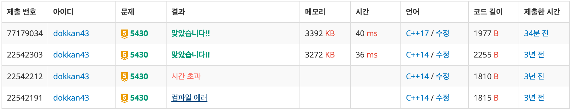 문제의 난이도는 골드 5로, 정답률은 약 20%이다. 시간 제한은 1초이다.